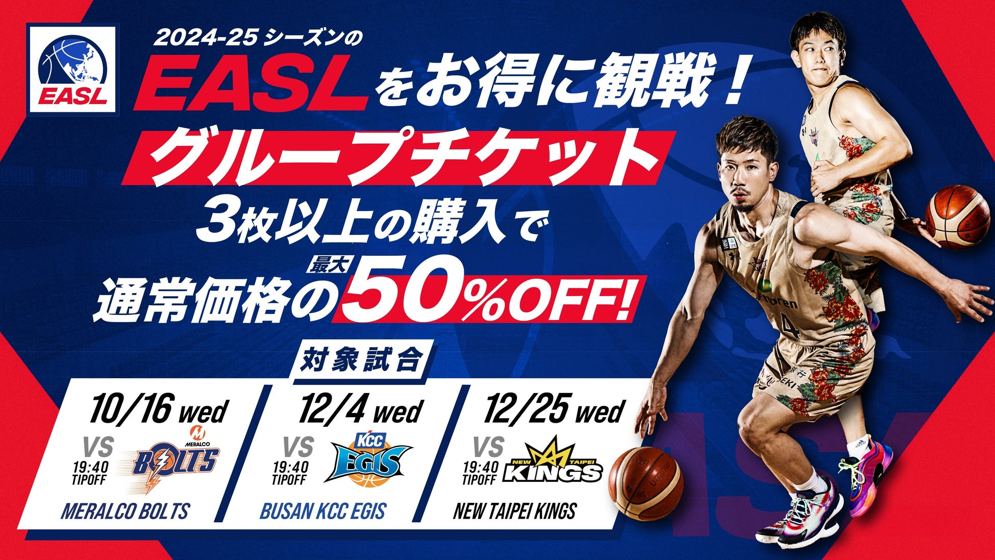 今シーズンのEASLでは、シングルゲームチケットに加え、3枚以上購入で対象の席種が最大50%お得になる「EASLグループチケット」をご用意しています。