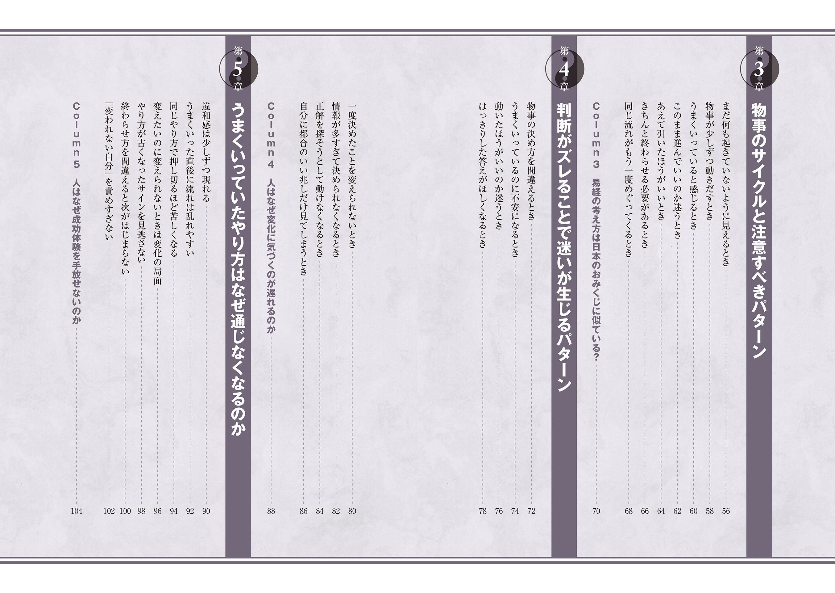 現代では占いの書というイメージが強い『易経』の書ですが、占い以外にも大切な教えがたくさん記されています。それらの本質とは、「変化する社会をどう受け止め、迷いの中でどう考えるか」という視点なのです。
