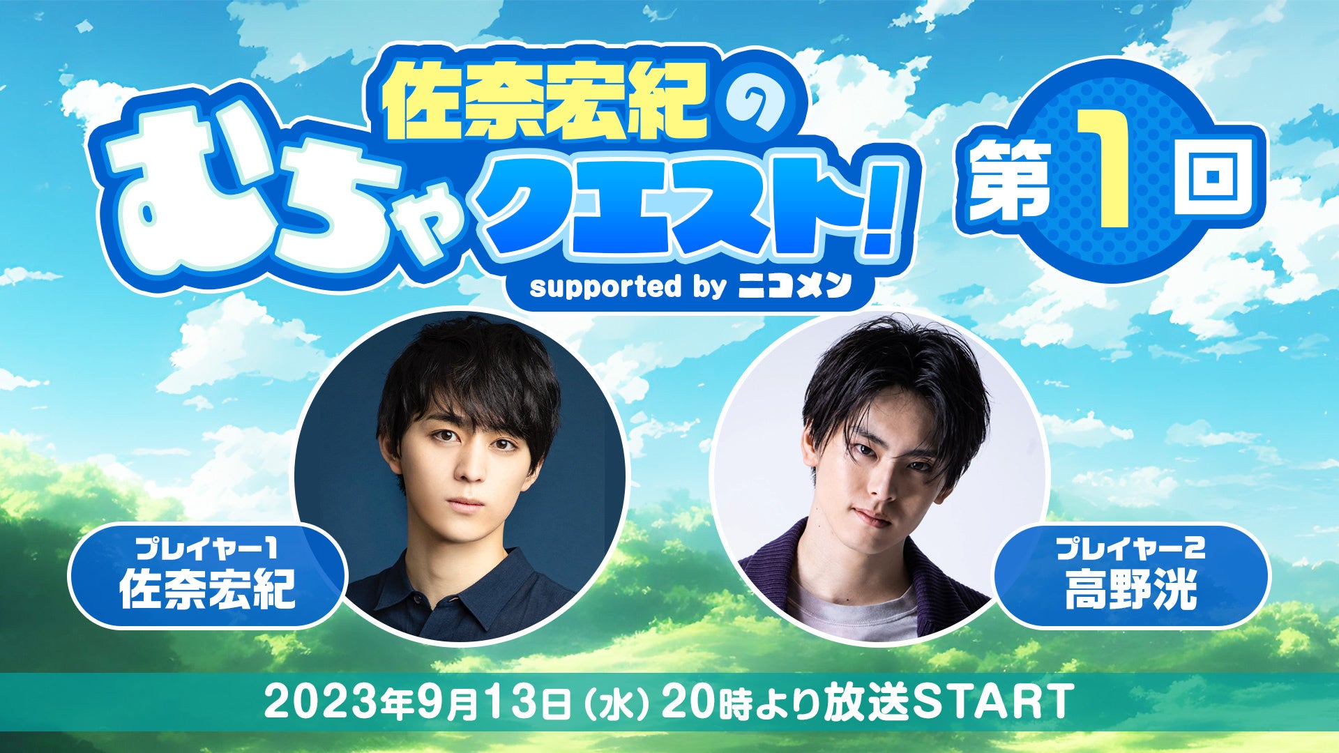 「佐奈宏紀のむちゃクエスト! supported by ニコメン」が、9月13日(水)20時よりニコ生にて放送決定。初回放送には高野洸も生出演。