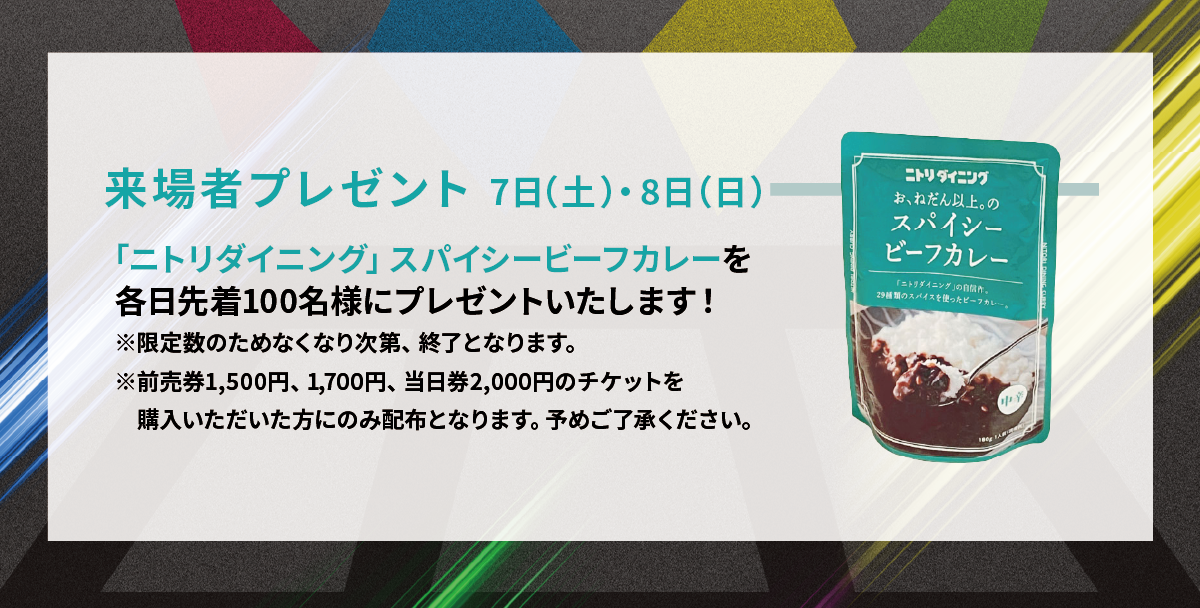【来場者プレゼント】各日先着100名様に「ニトリダイニング」スパイシービーフカレーをプレゼント。