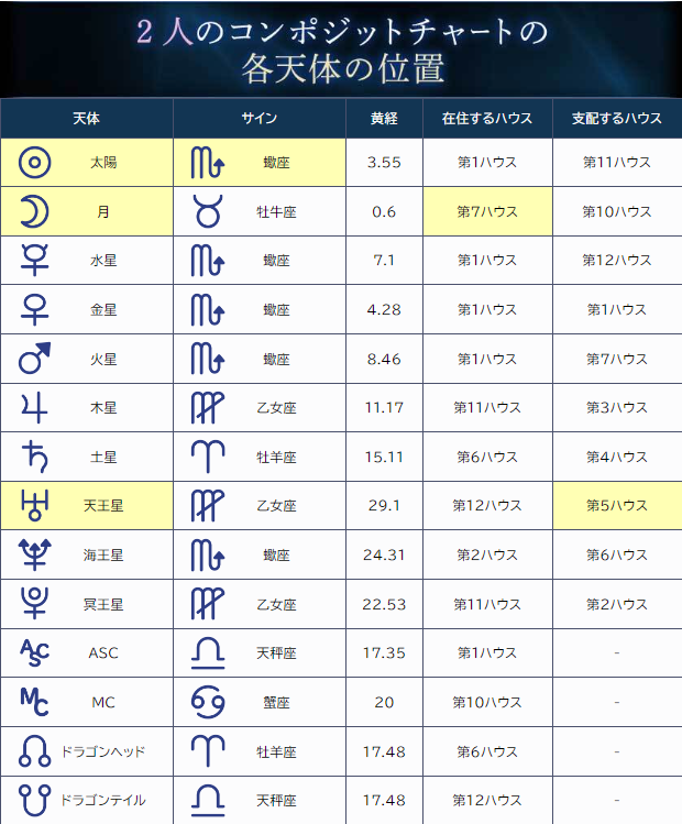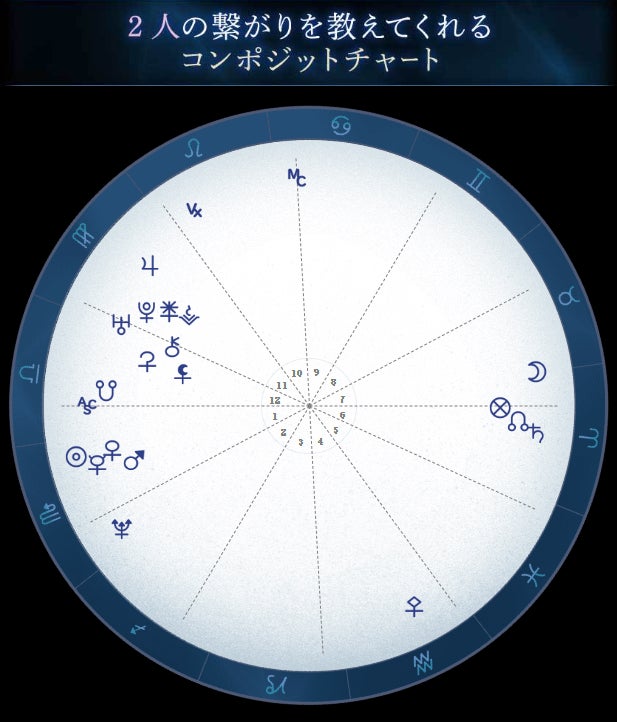 2人のホロスコープを掛け合わせたコンポジットチャートを使って、あなたとあの人の相性率、2人が出会った意味や、今後の関係まで……1つずつ鑑定していきます。あの人とどのように付き合えば良いのか、2人の相性への理解を深めていきましょう。