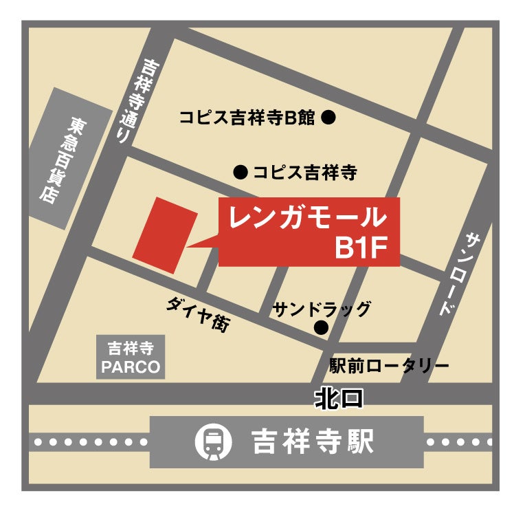 住 所 :東京都武蔵野市吉祥寺本町1-8-5 吉祥寺レンガ館モール B1F