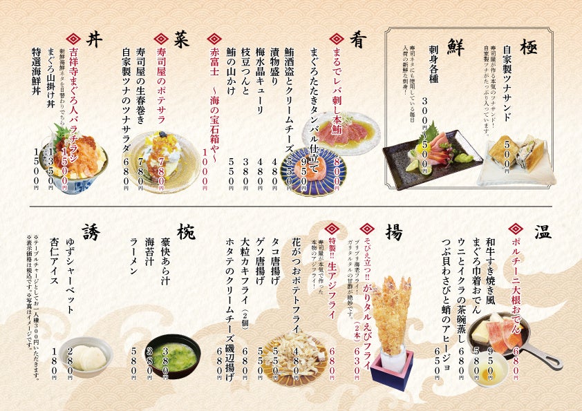 自慢の本鮪をはじめ、新鮮ネタのお寿司やこだわりのメニューを取り揃えた新しい「吉祥寺まぐろ人 Mogura」、この機会にぜひご来店ください!
