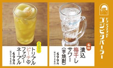 ⑦ドリンクスタンド 「ゴジピタパーラー」ちょっと懐かしくて新しい。イマドキカクテル&チューハイをお楽しみいただけます。あなたも5時にぴったり仕事を終わらせて、「ゴジピタパーラー」へ。・名物ドリンク① 漬込梅干しサワー 548円・名物ドリンク② トリプルピーチファジーネーブル 548円