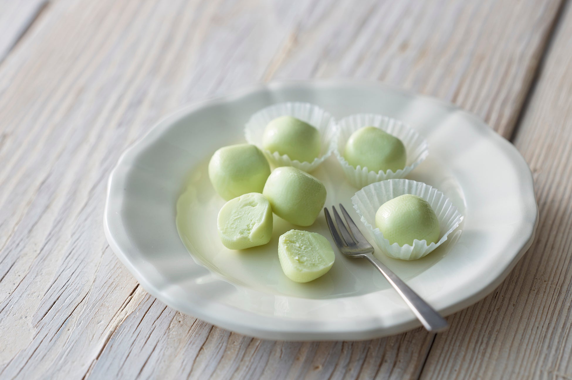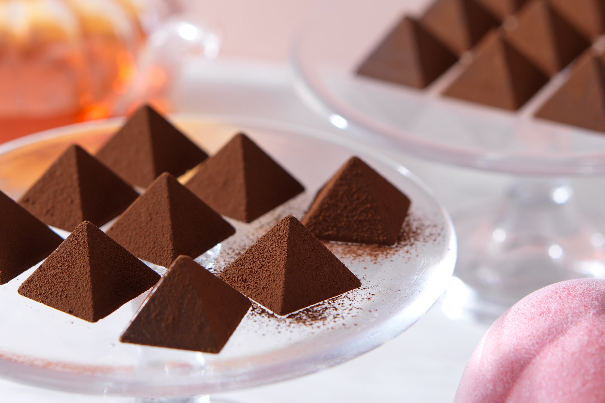 魔法みたいにすっとなめらかに消えていく口どけ。その秘密は、「21.9度」に設定した融点と、美しいピラミッドの形にあります。なめらかな口どけとともに、花咲くようなダージリンティーの香りもご堪能ください。
