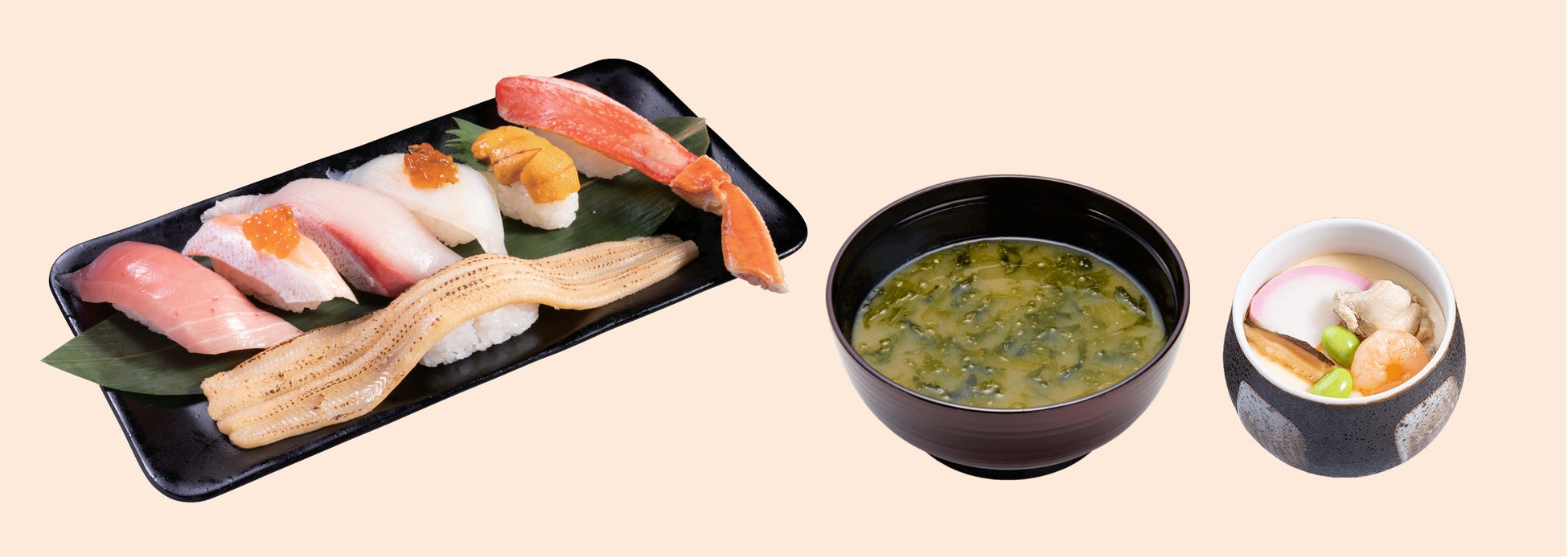 毎月ご好評の「わくわくキャンペーン」。特典一つ目の今回のお得メニューは、この冬イチオシの豪華ネタが一皿にそろった『かっぱの極み贅沢にぎり~冬の七貫~』と『あおさの味噌汁』『茶碗蒸し』の満腹セット!さらに本格ラーメンとポテトのセット、大人気定番サイドメニューのセットや食後のデザートにぴったりなスイーツセットまで全4種類が登場します。