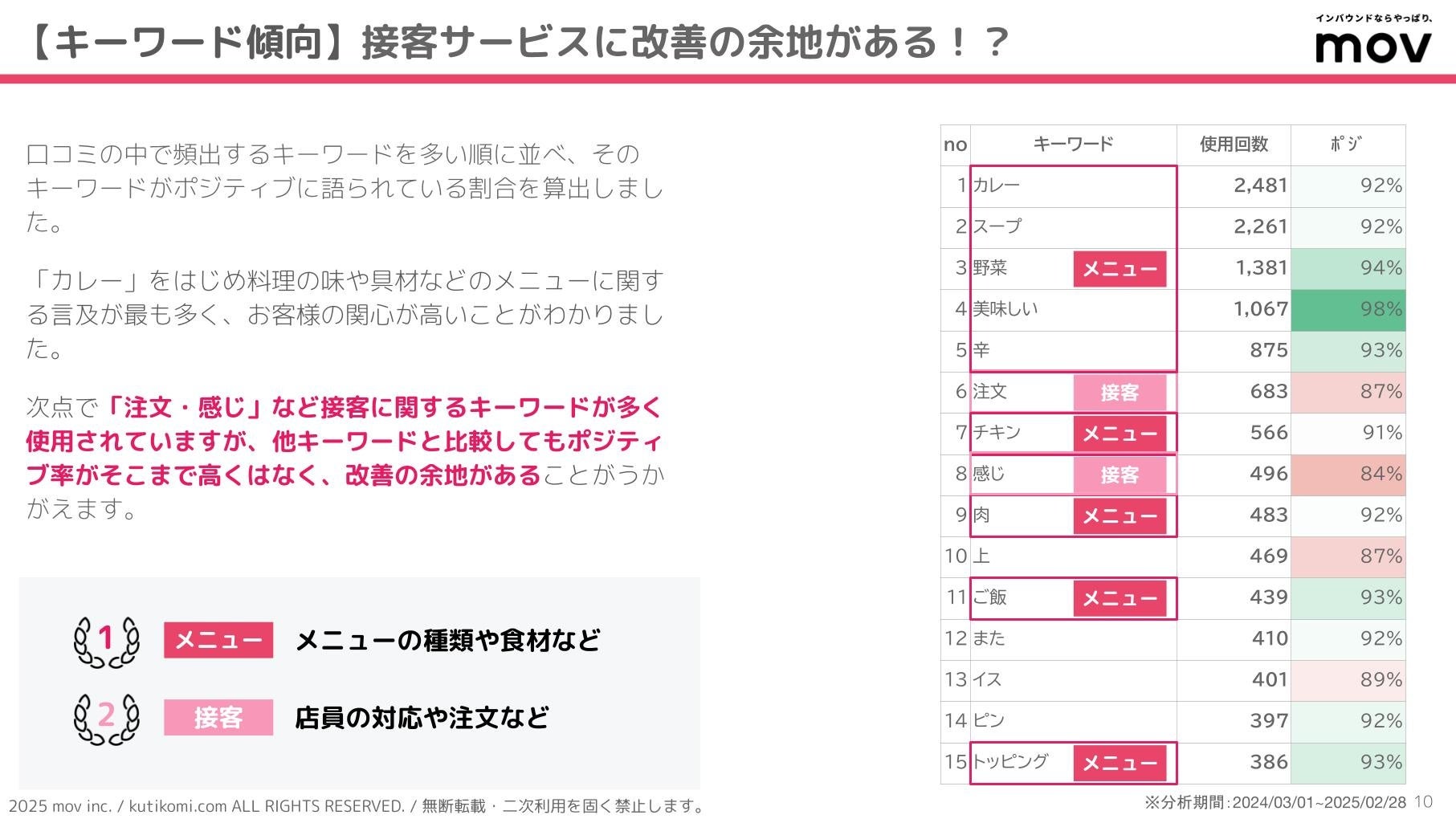 口コミ分析対象期間:2024年3月1日 〜 2025年2月28日