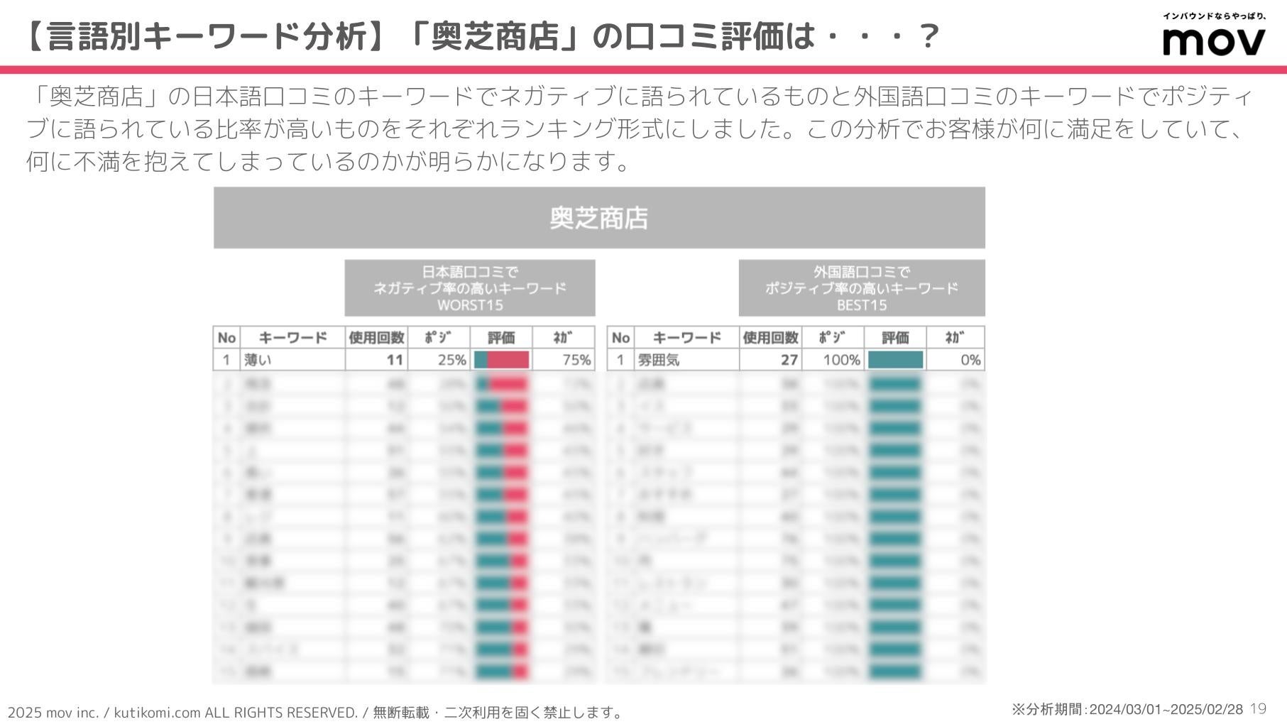 ■【言語別キーワード分析】「奥芝商店」の口コミ評価は・・・?