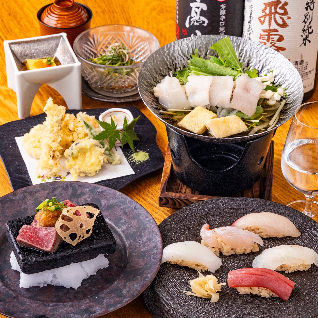 まるで2人だけの特別な時間が流れる静寂の空間を演出。川沿いに面した個室もご用意しており、大人の食事会はもちろん、ご接待や女子会、バースデーなどの特別なひとときにも最適です。