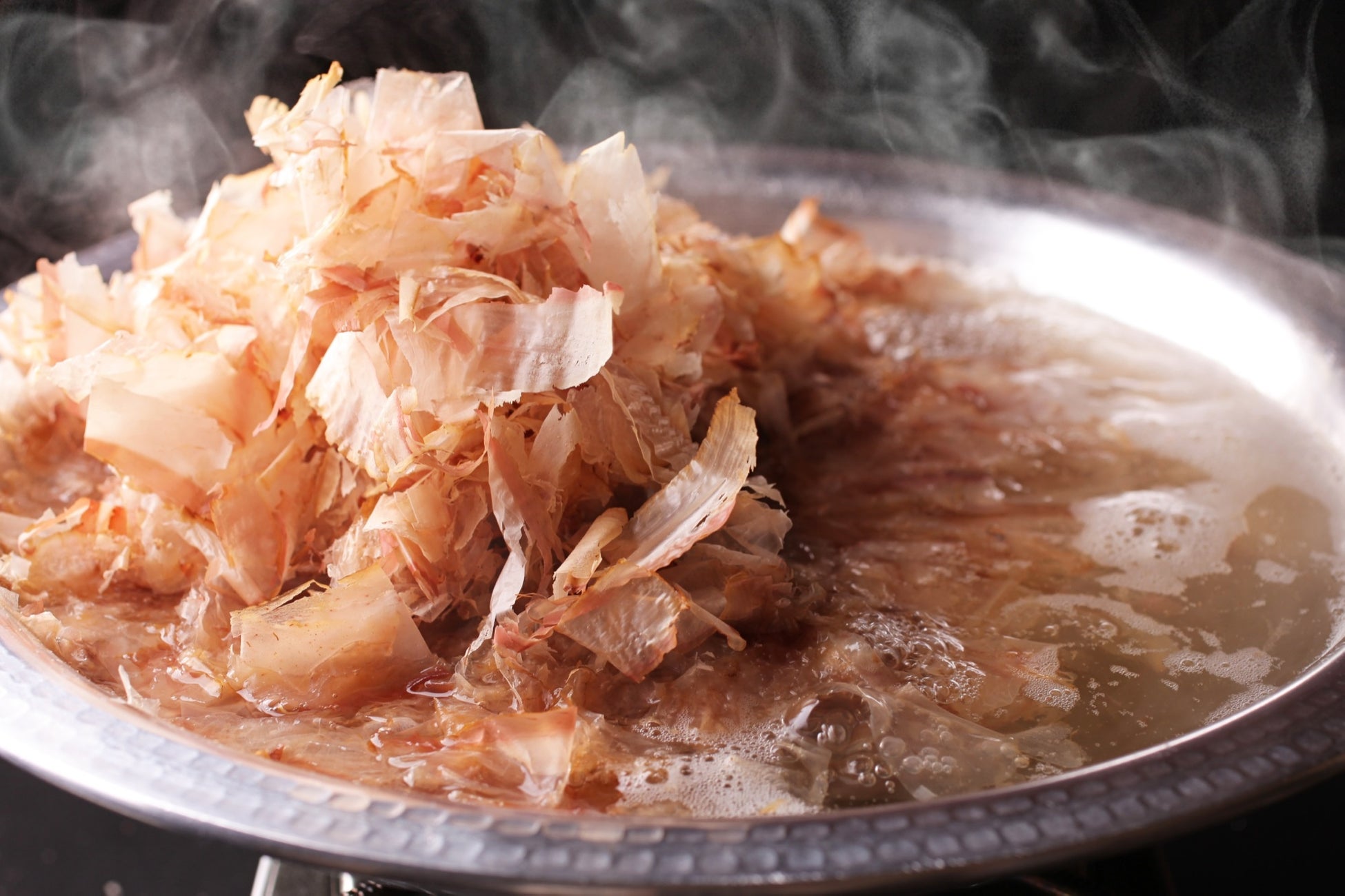 北海道南地方の『最高級天日干し昆布』と、高級料亭で使用され、一般に出回ることのない『まぐろ節』で職人が毎日丁寧に引く出汁は、