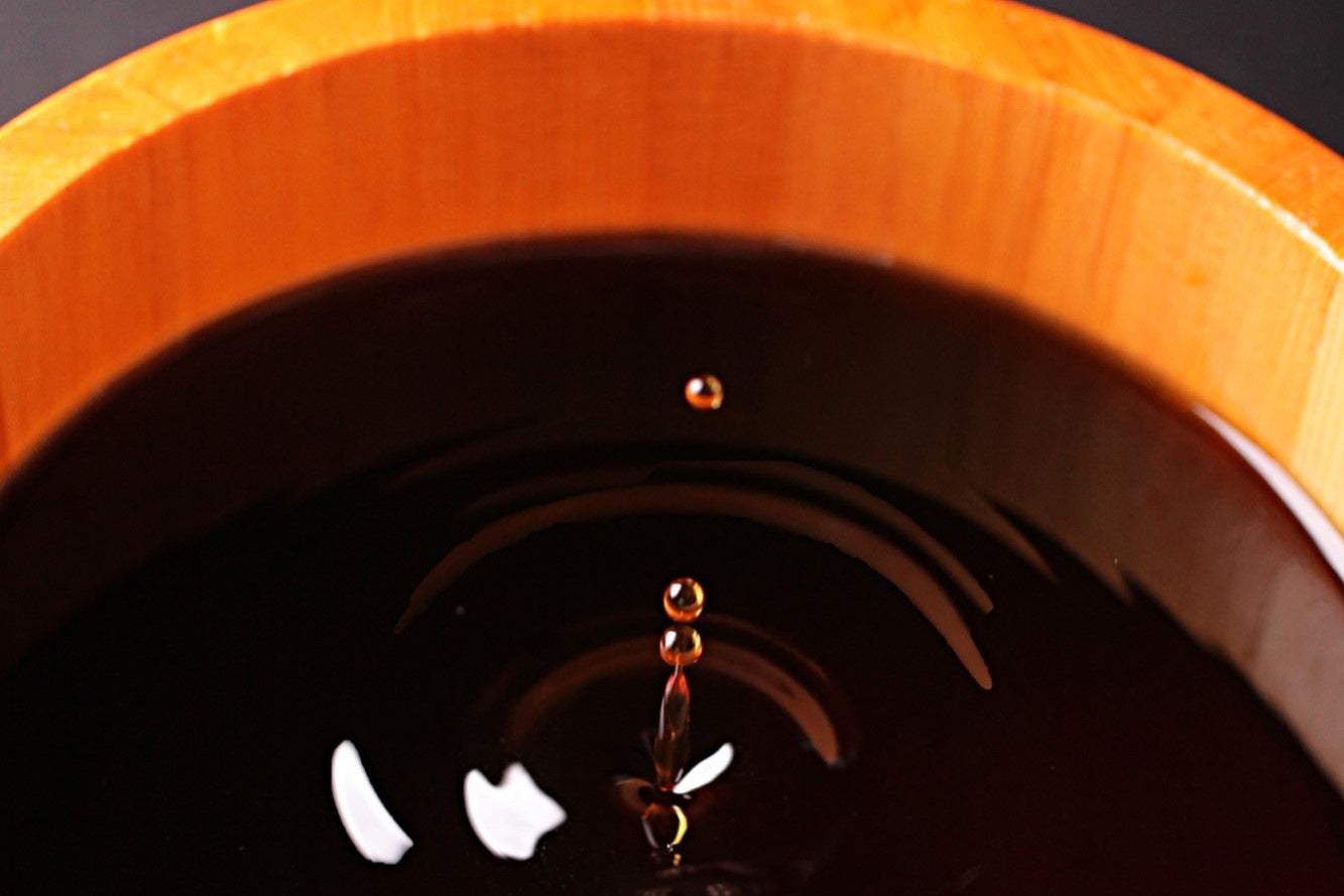 煮切り醤油は、創業明治14年の和歌山の湯浅醤油を使用し、味醂は160年の歴史を持つ甘強本味醂を煮切り作る。