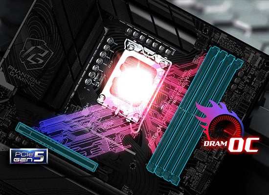PCIe Gen5 x16スロット、最大8000+(OC)に対応したDDR5メモリスロット、PCIe Gen5x4対応M.2ソケットを備えており、ゲーミングPC向けの最新のPCパーツを搭載することが可能です。
