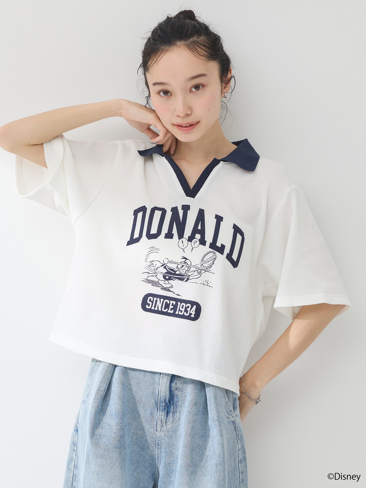 そのほか、ドナルドダックとデイジーダックの愛らしい表情をプリントしたラメ入りTシャツ、トレンドのスポーツテイストを取り入れたテニスウェア風ワッフルプルオーバーをご用意いたしました。
