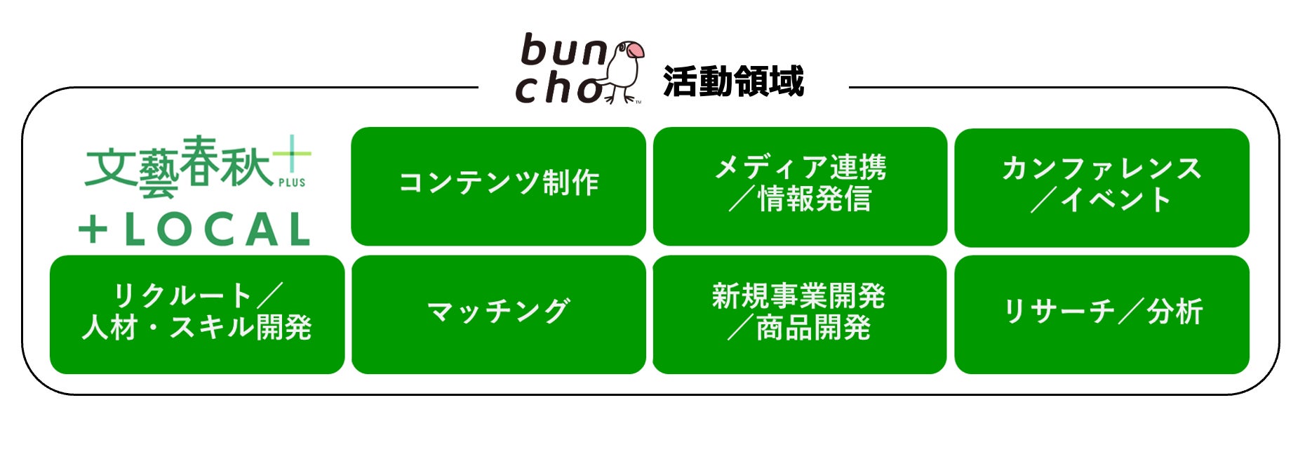 株式会社文藝春秋(本社:東京都千代田区/代表取締役社長:飯窪 成幸)はこの度、株式会社朝日広告社(本社:東京都中央区/代表取締役 社長執行役員:福地 献一)と共に、地方創生と地域振興をテーマとするビジネスユニット「buncho」を立ち上げたことをお知らせいたします。