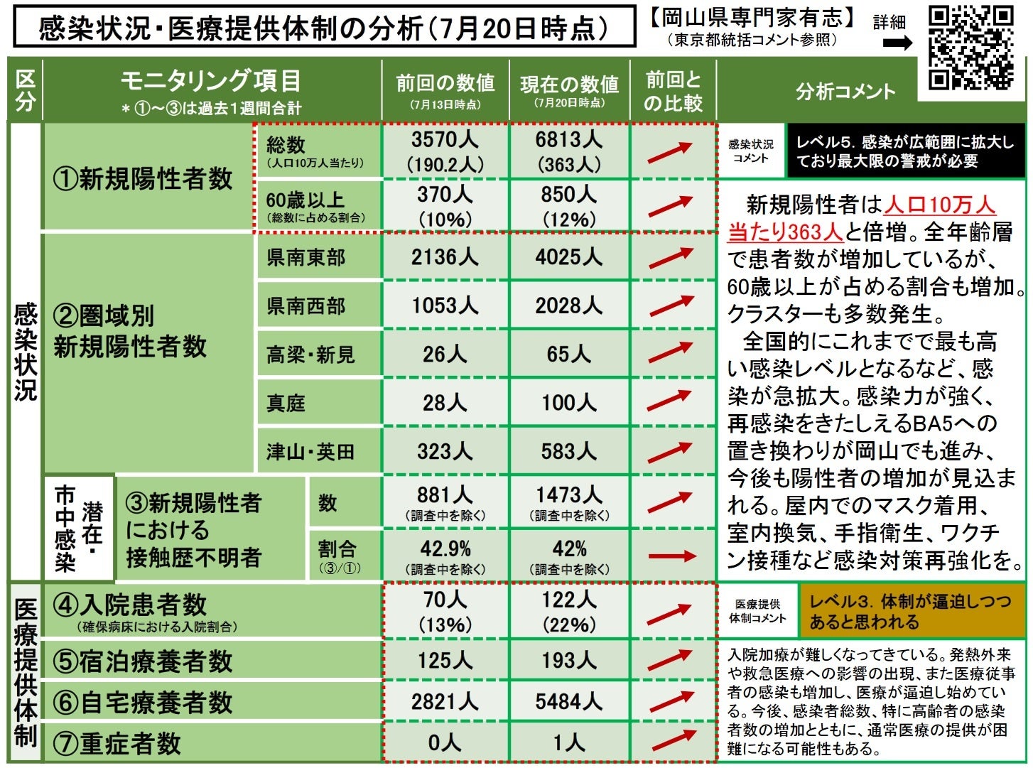 ・岡山県内の感染状況・医療提供体制の分析について(2022年7月6日時点)
