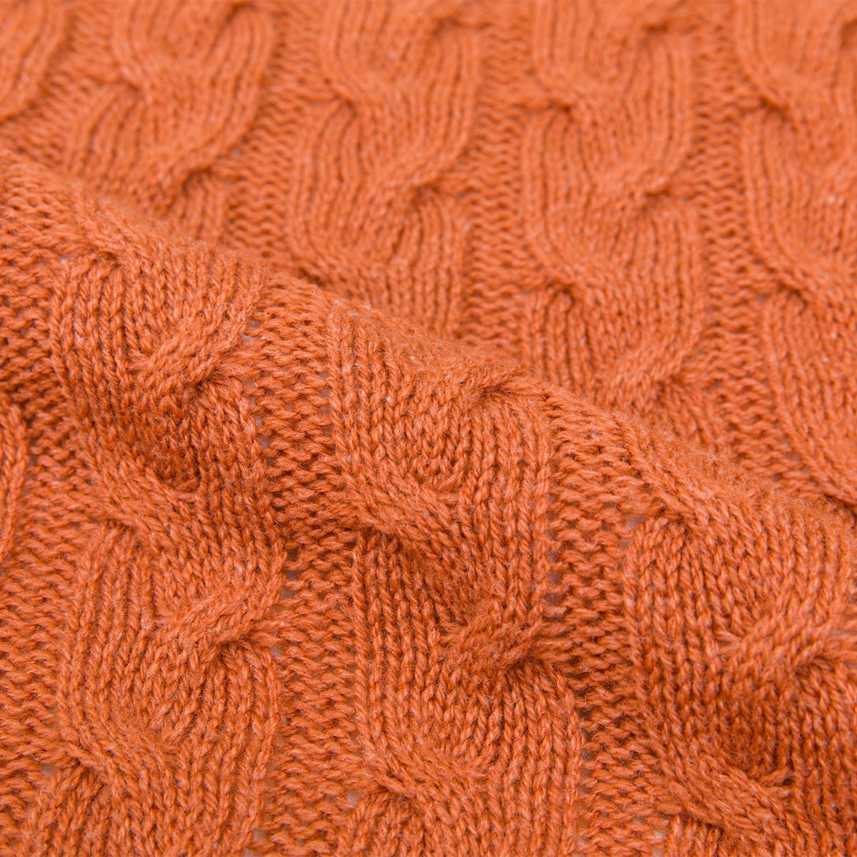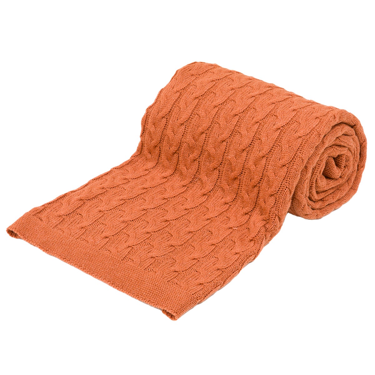 肌寒くなってきた時期、さっと掛けるのに便利。ココアブラウンのアクセントカラーと温かみのあるケーブル編みで、ソファに無造作に掛けておくだけでお部屋に秋の気配が漂います。