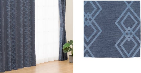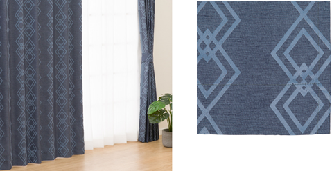 日差しや外気の熱を遮る遮光・遮熱機能付き。寒い時期も外気を遮り、室内を年中快適に保ちます。ベースと同系色の幾何学柄がさりげないアクセントに。