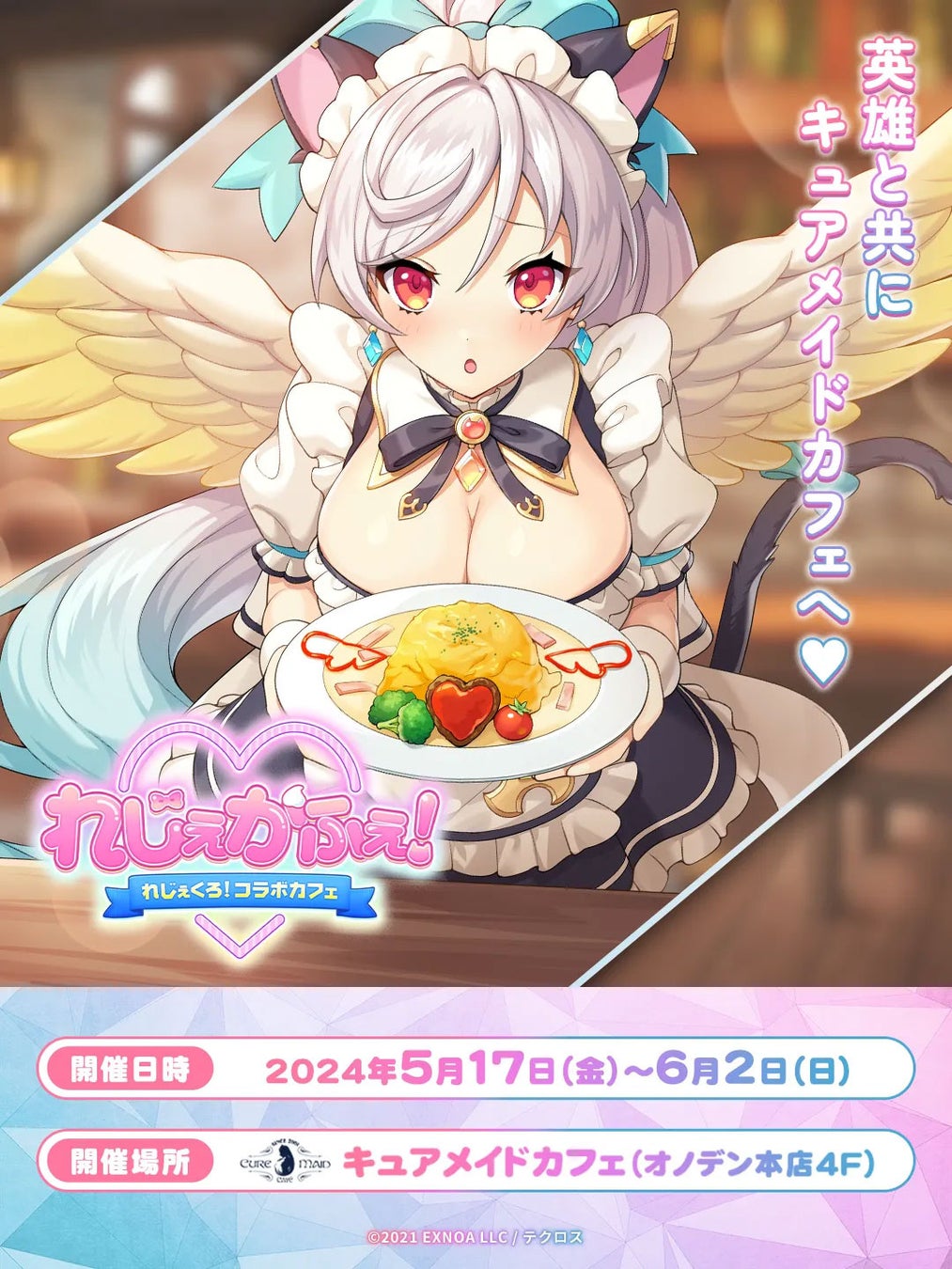 5月17日(金)~6月2日(日)秋葉原にあるCURE MAID CAFÉ(キュアメイドカフェ)にて、王道ファンタジーSRPG『れじぇくろ! ~レジェンド・クローバー~ 』のコラボカフェを開催いたします。