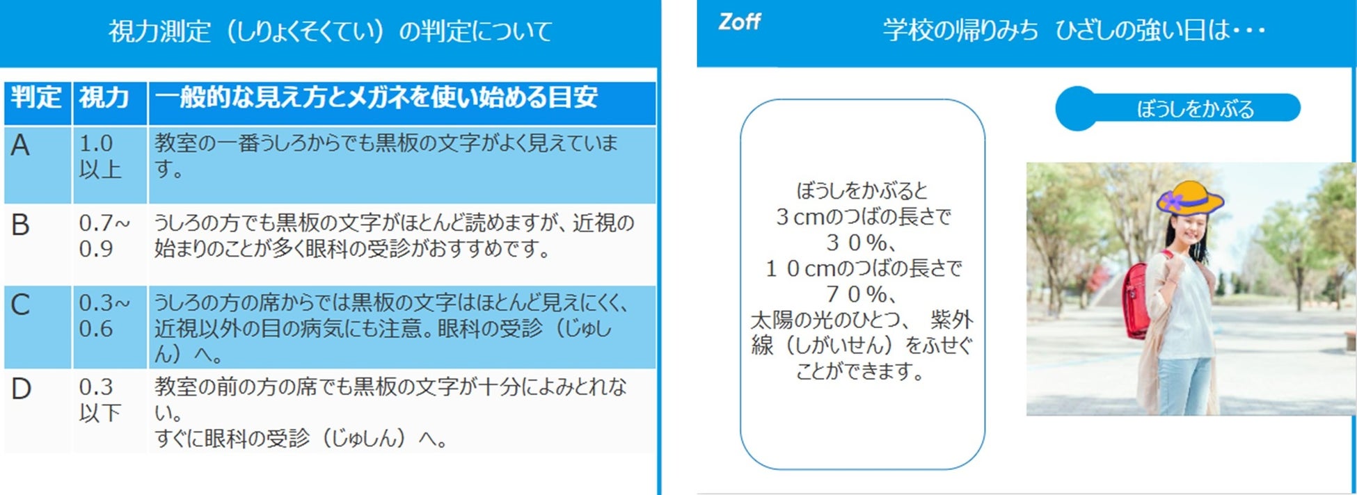 今後もZoffは、子どもたちが日常生活の中で、目の健康やデジタルデバイスの適切な使い方、紫外線対策について考えるきっかけとなる取り組みを実施していきたいと考えております。