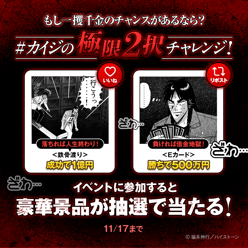 Xイベントを合わせて、この機会にぜひ「カイジ」シリーズの「ざわ…ざわ…」する世界観をピッコマでお楽しみください。