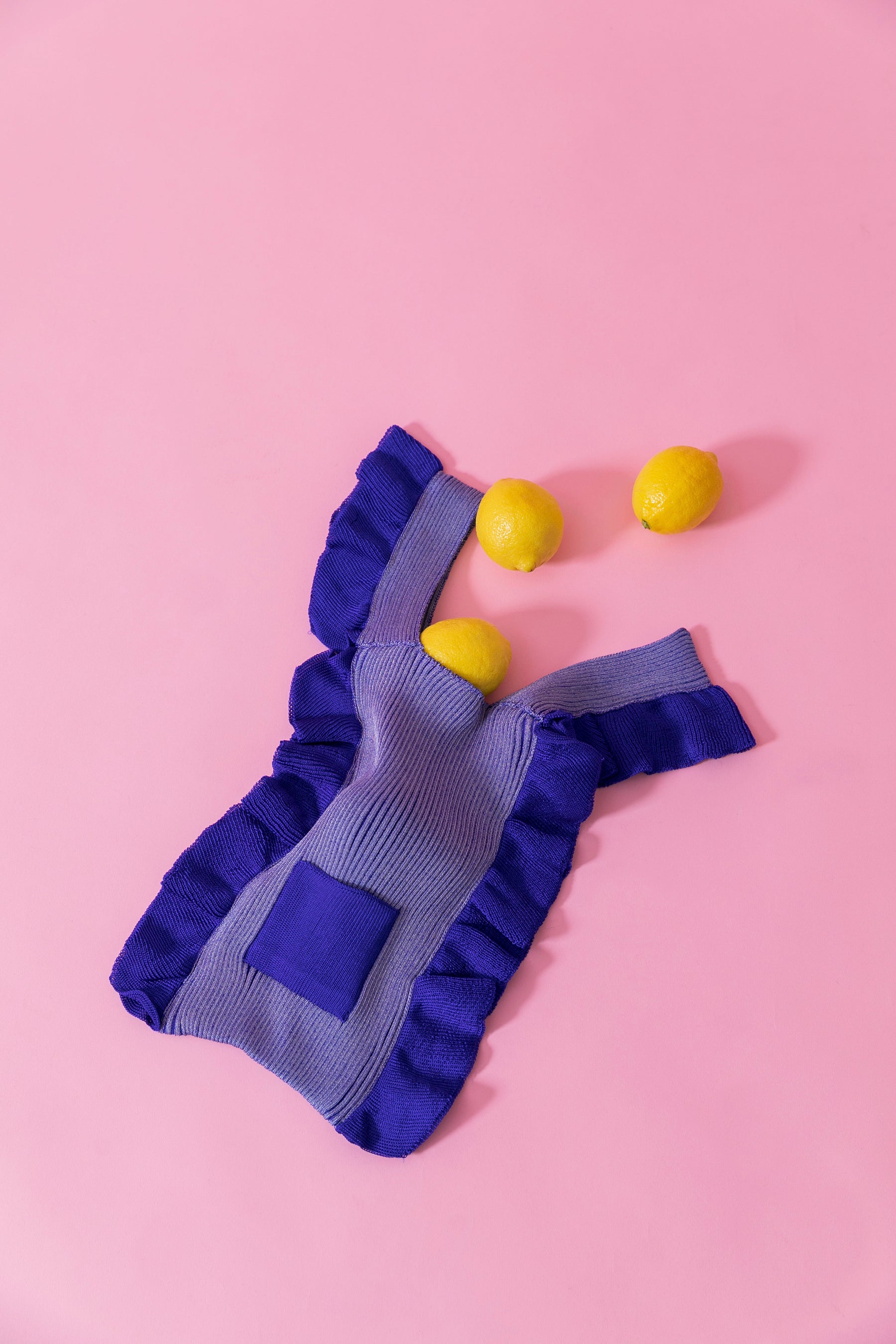 今シーズン PROTCOL で登場するニットバッグに、URBS らしい鮮やかなブルーカラー を別注させていただきました。