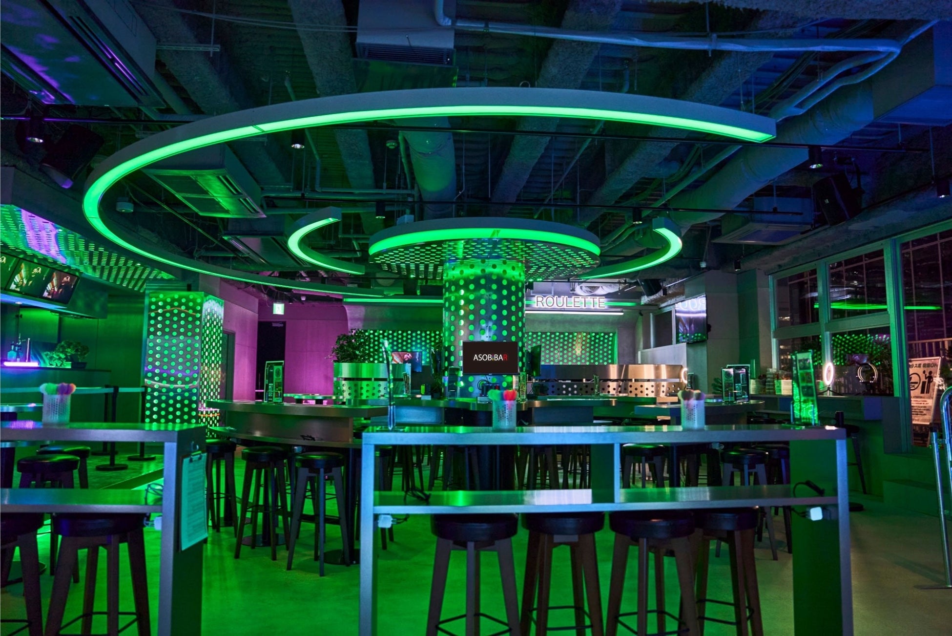 その日のお客様の気分から選べるカラーリストバンドを手首につけて、 新しい出会いを広げるマッチング×遊び場のこと。店内にはダーツやボードゲームなど男女の交流がさらに盛り上がるようなゲームが豊富に揃っており、大人の新型アミューズメントバーとなっております。