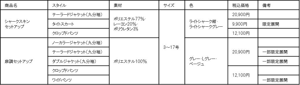 夏セットアップ 商品ラインナップ