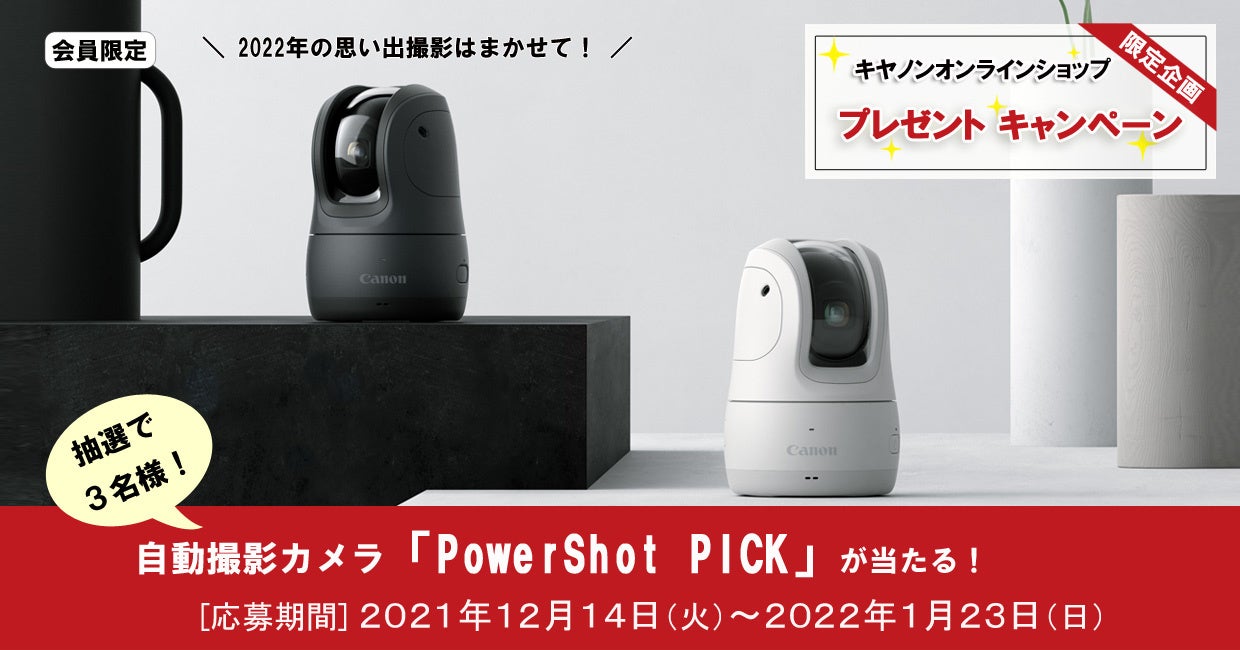 内容:応募期間中に会員ログインの上、アンケートにご回答いただいた方の中から抽選で3名様に、「 PowerShot PICK 」をプレゼントいたします。