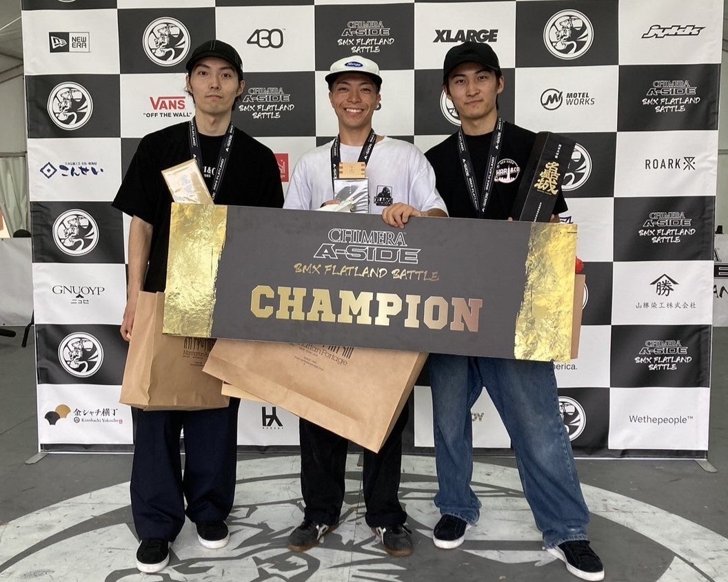CHIMERA A-SIDE BMX FLATLAND BATTLE 2025 二之陣 名古屋城編、優勝することができました!前回のCHIMERA A-SIDEでは新しい技が決めきれず準優勝と少し悔しい思いをしましたが、前回は決めきれなかった新技を決めることができ、その結果優勝することができました。先々週のフランスの世界大会でも良い成績が残せて凄く嬉しいですが、来月は全国大会があるので、また気持ちを入れ替えてその大会に向けて練習に励みたいと思います。皆さん応援ありがとうございました!