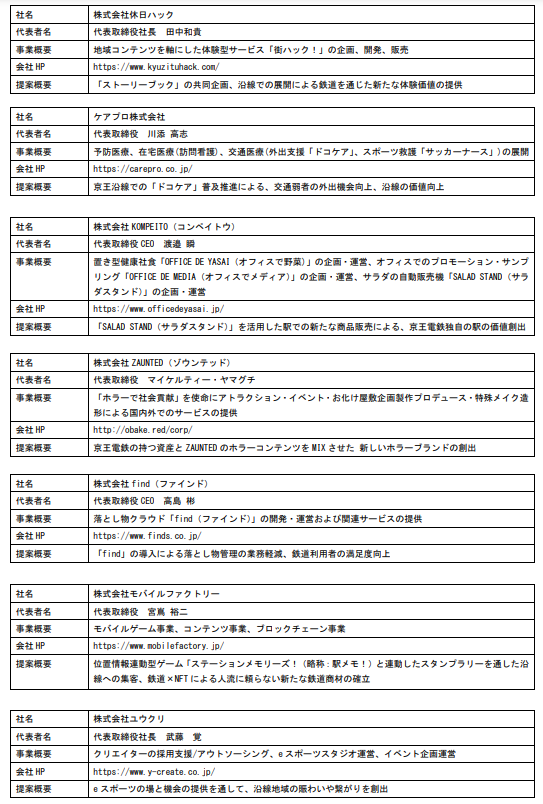 ご応募いただいた71件の中から、書類審査・面談審査を経て、10月25日(火)に京王電鉄社長をはじめとした関係役員による最終審査会を行い、7件の提案を採択しました。