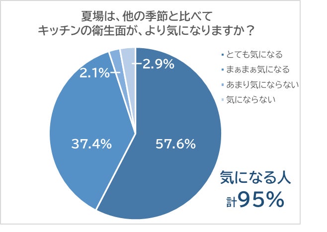 当社調査(※4)では、キッチン環境の衛生面が夏場はより気になると95%の人が答えました。特に生ごみに関する悩みを持つ人が多く、ニオイ、コバエなどの虫、ごみの日までの保管や処理、などがあげられました。