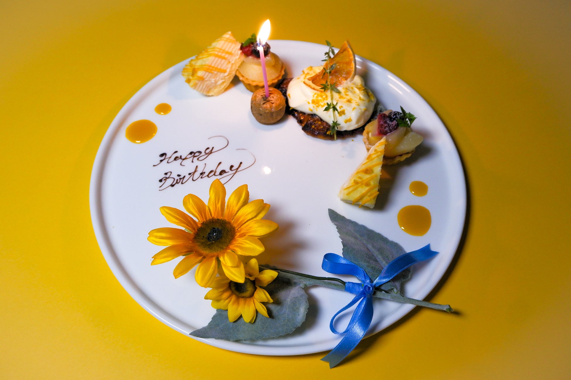 記念日コースでは季節のフラワーデザートプレートor苺のミニタワーケーキを好みに合わせて選ぶことが可能。