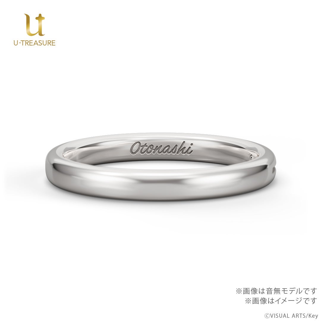 このたびの新作は、「Angel Beats!」のロゴを表面に、内側にキャラクターの名前を刻印したリング(指輪)です。永くご愛用いただけるよう着け心地にまでこだわり仕上げました。
