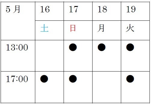 日時・会場 5月23日(土)17:00 / 5月24日(日)13:00