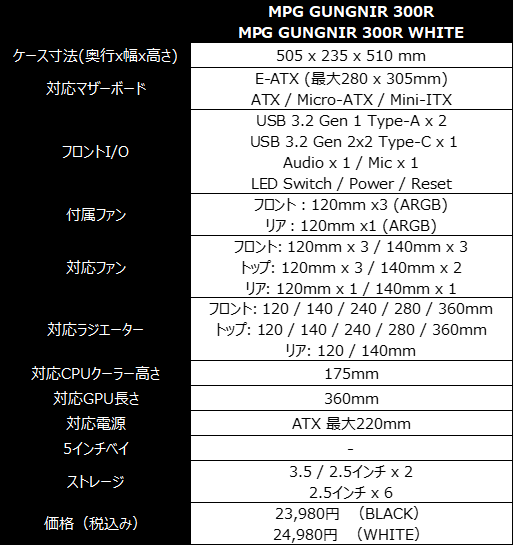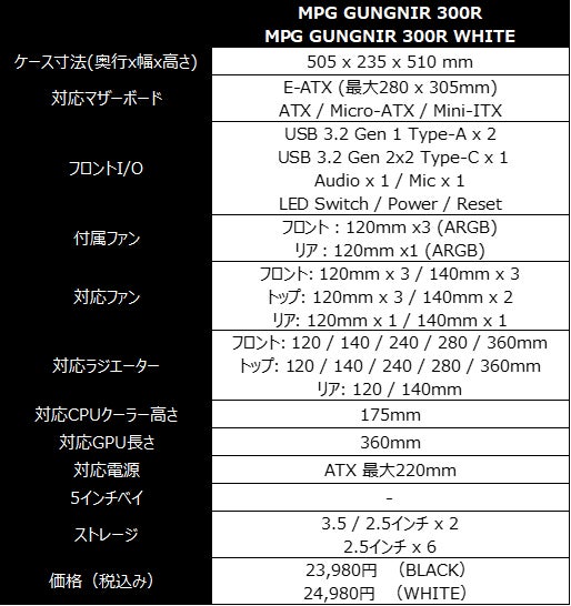 【MPG GUNGNIR 300R AIRFLOW WHITE】:税込24,980円