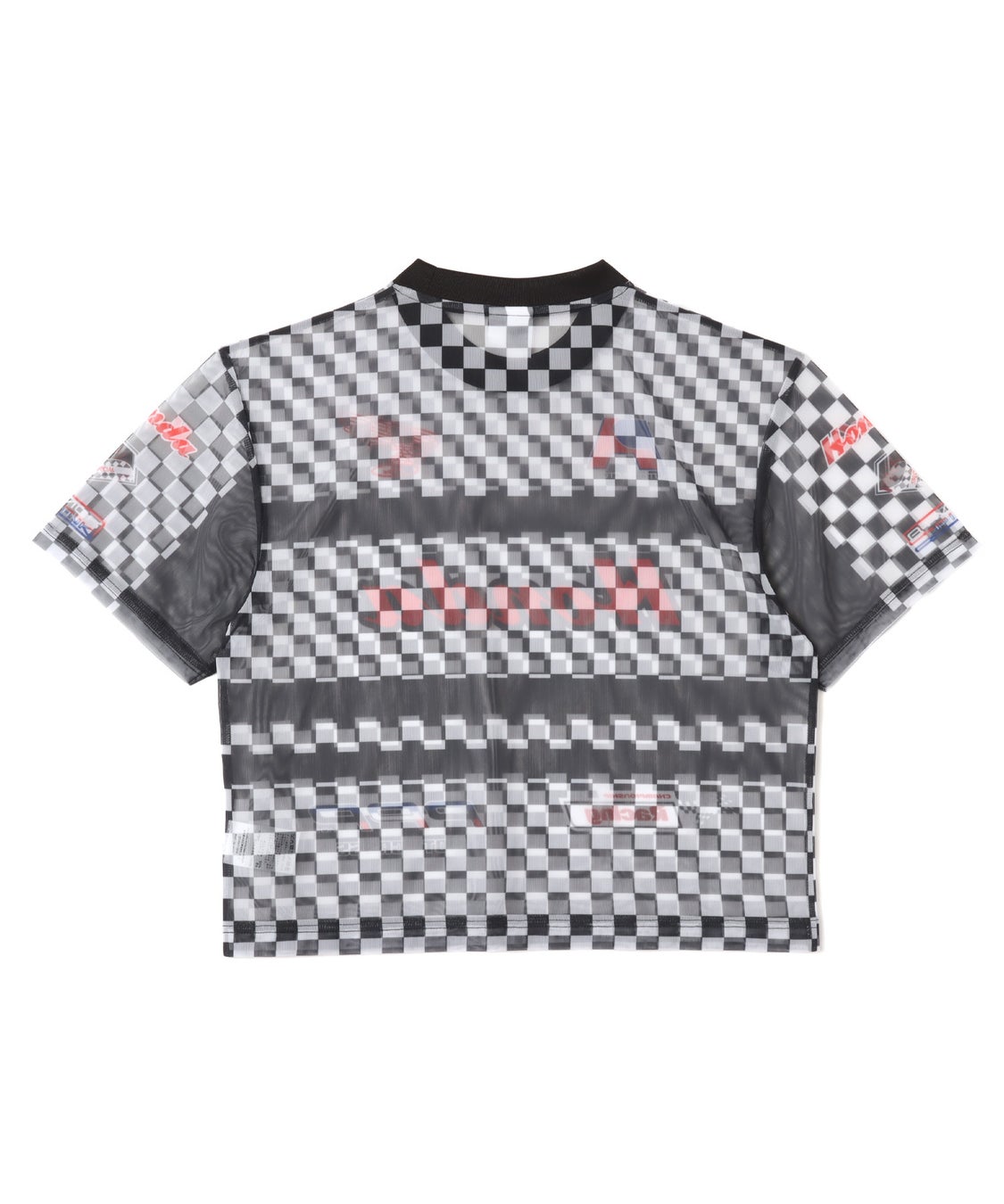 「HONDA」のロゴやウィングマーク、モータースポーツを彷彿させるチェッカーフラッグ柄など、武骨でスポーティーなモチーフを、メリハリのあるサイズ感やレディライクな素材使いで、atmos pinkらしいストリートスタイルに落とし込みました。