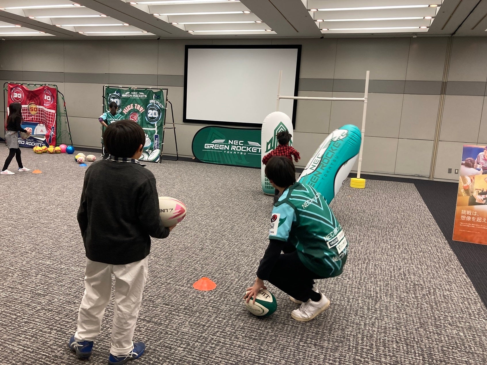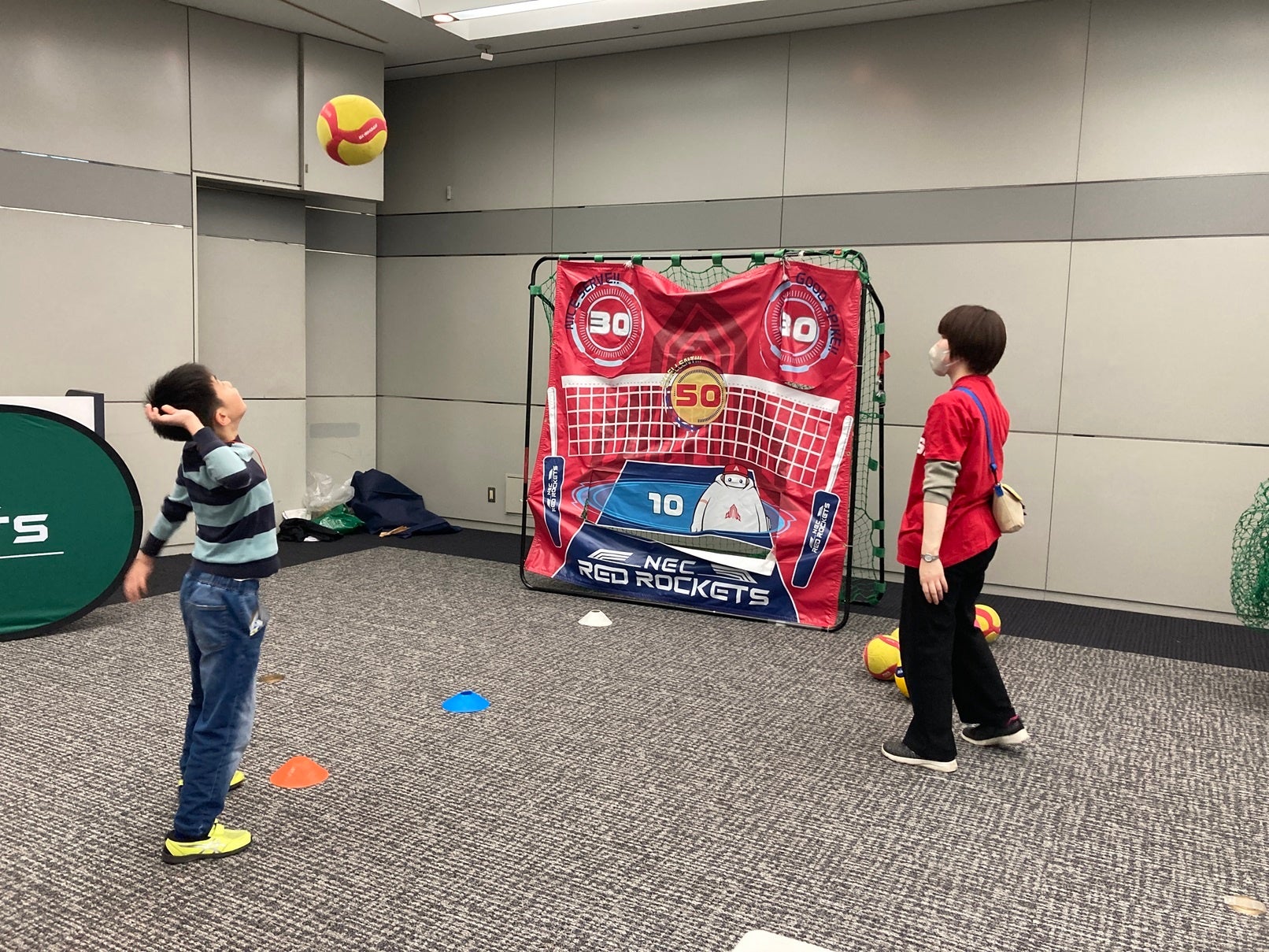 NECグリーンロケッツ東葛および NECレッドロケッツ川崎のスタッフと一緒にスポーツを体験。また、NECロケッツ選手の等身大パネルと記念撮影。