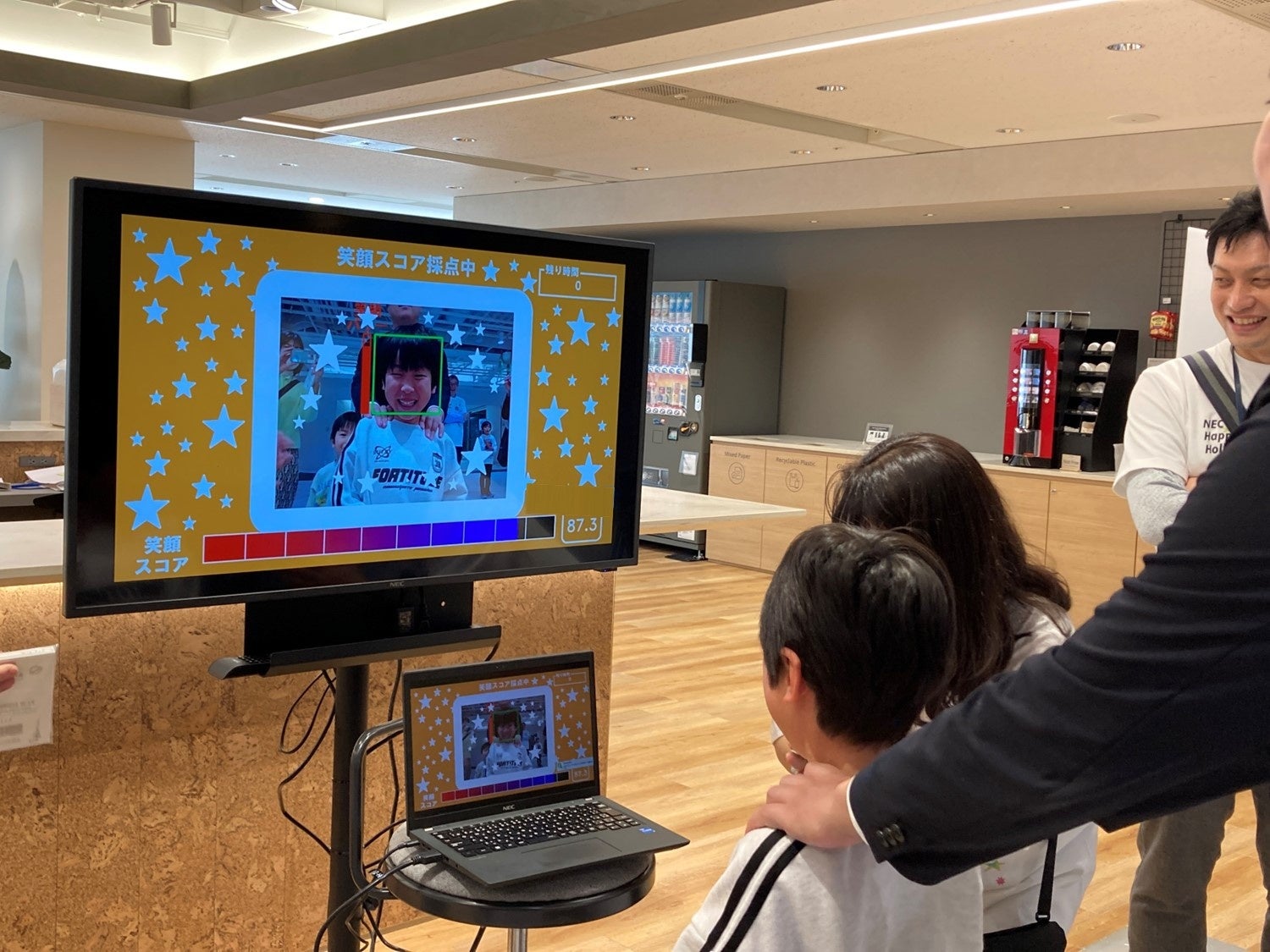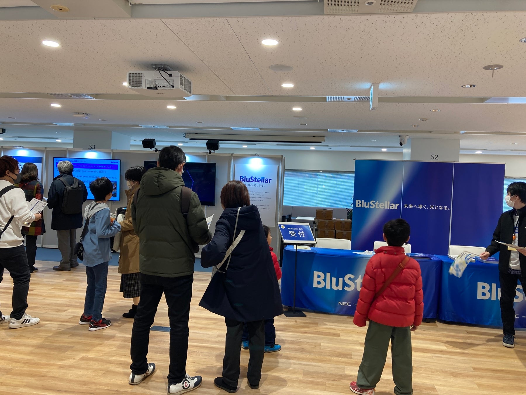 2024年5月に発表した「BluStellar」をご家族向けに分かりやすく紹介。また、NECの顔認証技術を体験できる「笑顔パワーゲーム」では高得点を狙って、皆さん満面の笑顔に。さらに、宇宙教室では70年近く続いているNECの宇宙事業の知見を活かし、宇宙の秘密や魅力などを学べるワークショップを実施。
