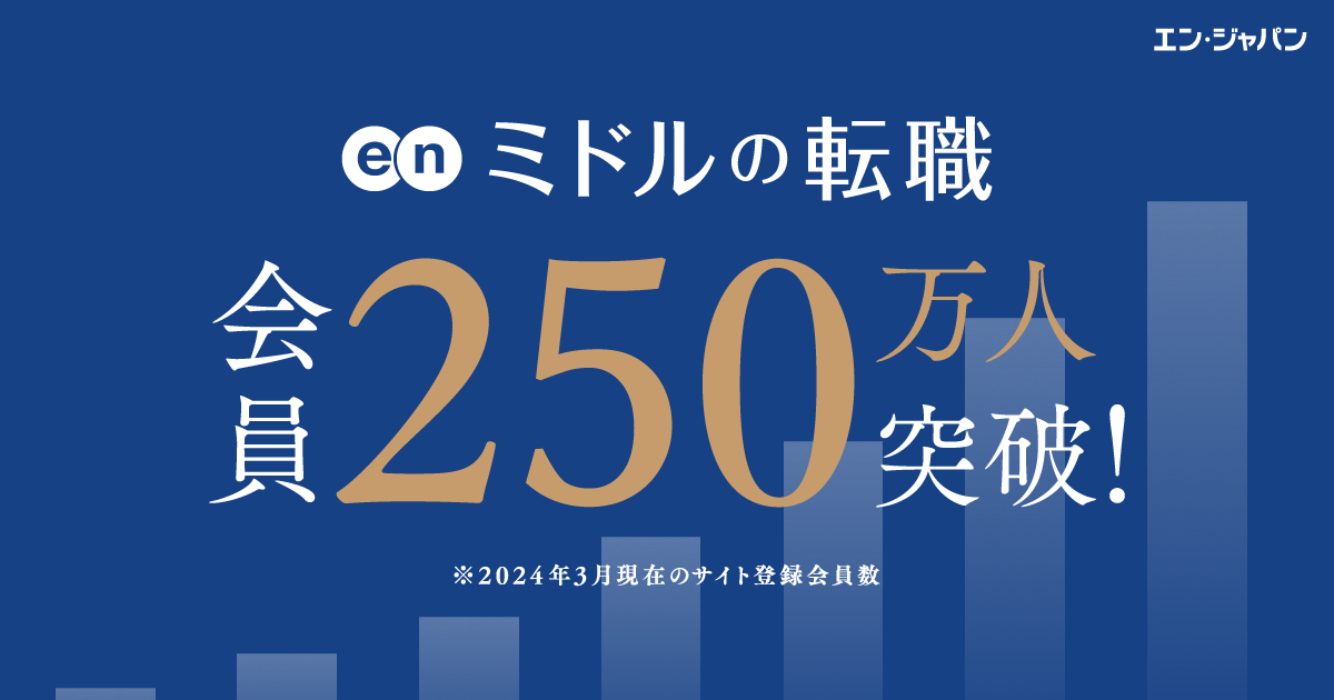 ミドル世代に特化した求人情報サイト『ミドルの転職』会員数250万人突破!