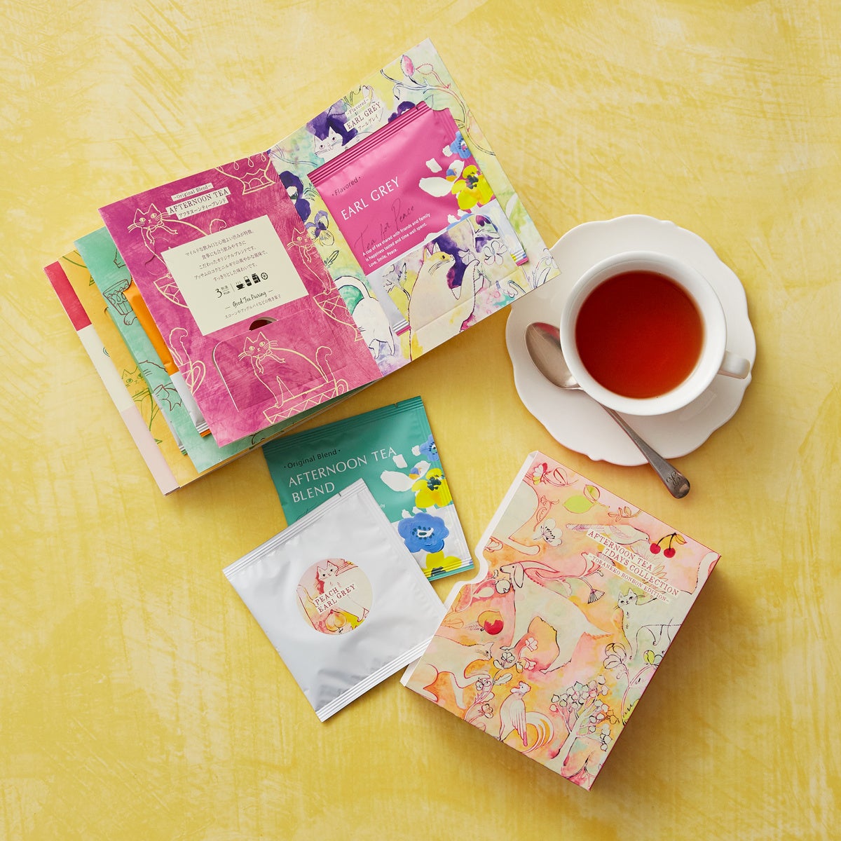 ・アフタヌーンティーブレンド、ファイブオクロックティー、ダージリン、アッサム、アールグレイ、アップル、ピーチアールグレイ
