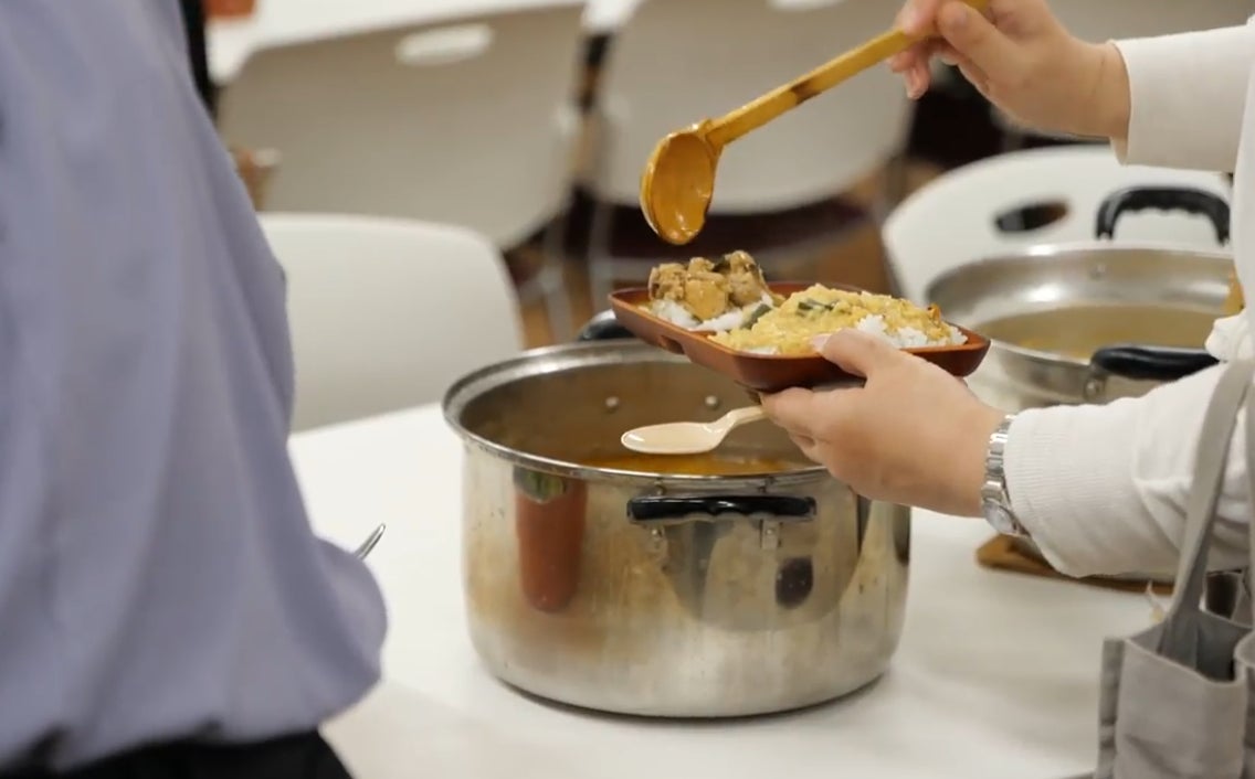 イベント前後には、2人が準備したスリランカのカレーを振る舞い、母国の味を紹介しました。日本人の口に合うよう、辛さを控えめにしたカレーは「スパイスの香りが本格的で美味しい」と参加者から好評で、シェフたちに感想を伝え交流しました。