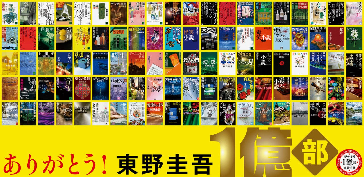 100万部×100冊(平均)。国民的作家、東野圭吾が到達した1億部という偉業! 記録更新中!