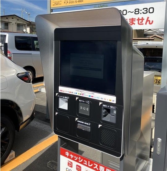 なお、キャッシュレス決済専用の駐車場は、原則として駐車場に設置したカメラにて車両ナンバーを認証し駐車車両を管理するカメラ式駐車場となります。カメラ式駐車場は、出庫前に事前精算機で車両ナンバーを入力し精算手続きを行うため、入庫時の駐車券の発券や出口ゲートでの精算が不要となります。カメラ式駐車場の展開により、駐車券の発券や精算行為に起因する入出庫渋滞を緩和するとともに、駐車券のペーパーレス化による環境負荷低減に貢献します。