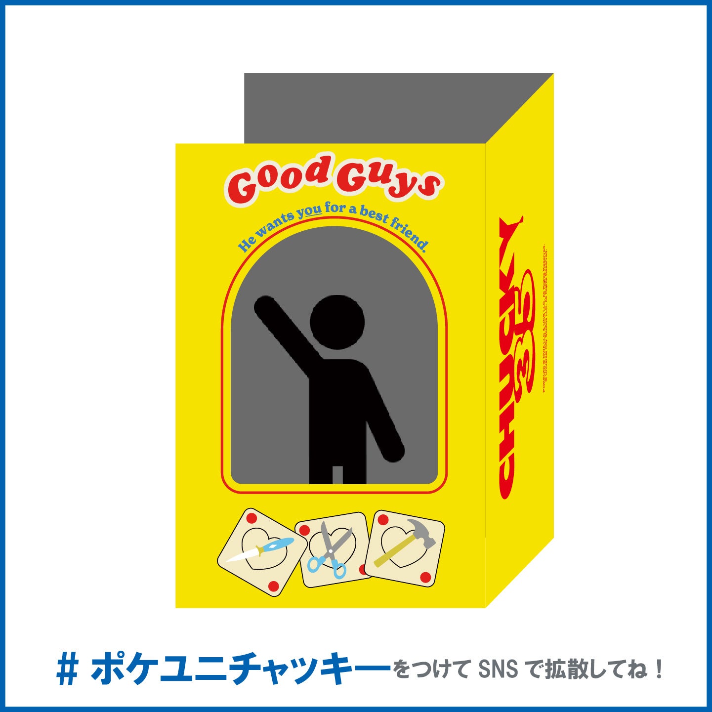 ポケユニハラジュクでは「チャイルド・プレイ」に登場する映画でお馴染みのGood Guys人形ボックスに入って写真が撮れるSNS映えなフォトスポットを設置。ポケユニアベノではストア内のミラーに映ると同じような写真が撮れるスポットが登場します。#ポケユニチャッキ― をつけてSNS投稿を促します。