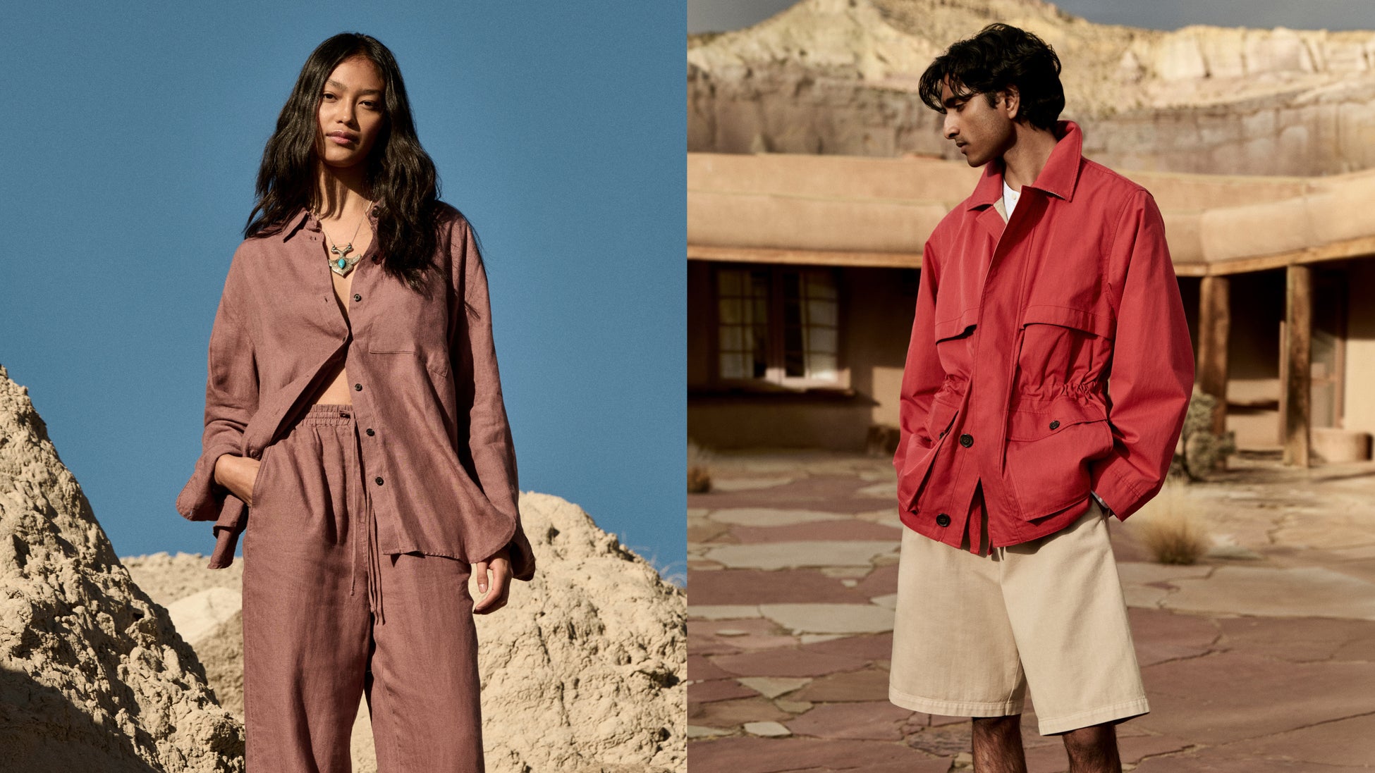 3月の最新コレクションでは、アメリカ南西部の色彩、質感、個性から着想を得たリラックスした雰囲気ながらも洗練されたアイテムが揃い、春のイベントや旅行などあらゆるシーンに活躍します。プレミアムな仕立て、職人技、ニュートラルなカラーパレットも南西部のアートギャラリーや建築、職人の細部からインスピレーションを得ています。バナナ・リパブリックは、現地の職人や機関と連携し、ブランドとその目的地との間に意義のある繋がりを創出しています。