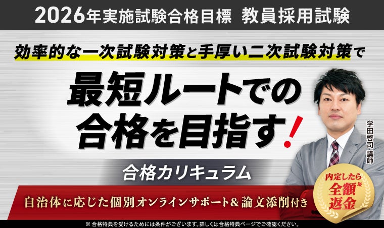 【2026年実施試験合格目標】教員採用試験合格カリキュラムリリース!