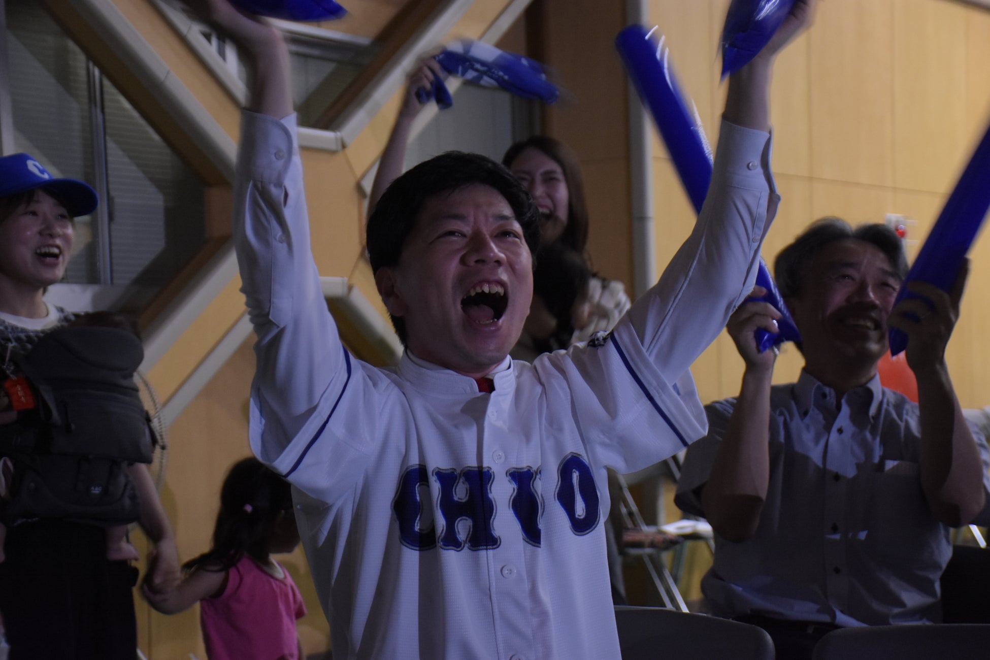 市民約200人がパブリックビューイングで熱い声援を送る