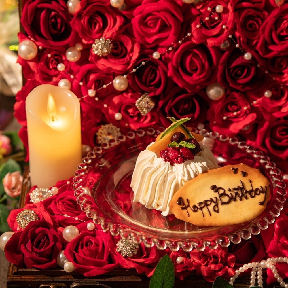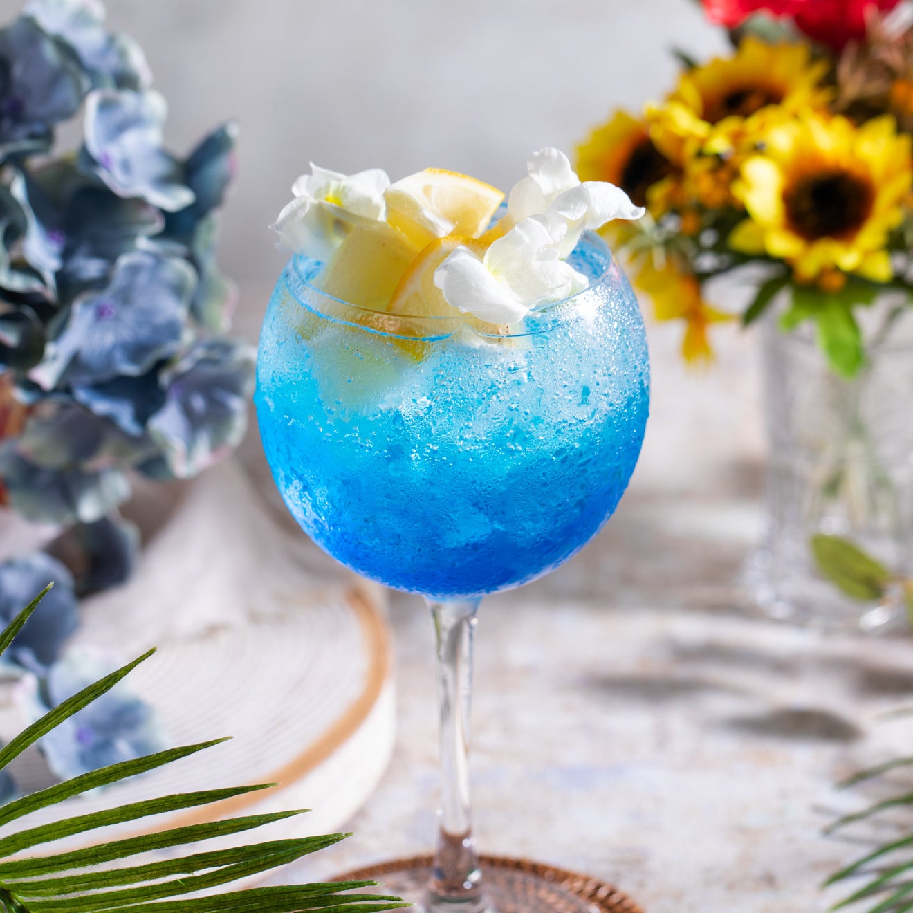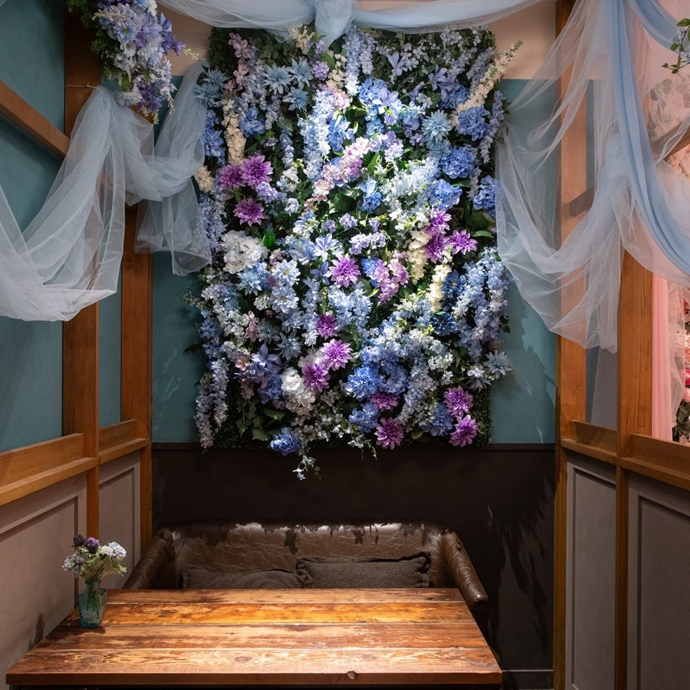 落ち着いたブルーの花が演出する、幻想的でクールな雰囲気。静かに語り合いたい夜や、大人の隠れ家のようなひとときを演出。