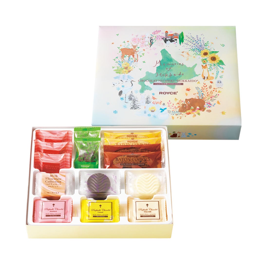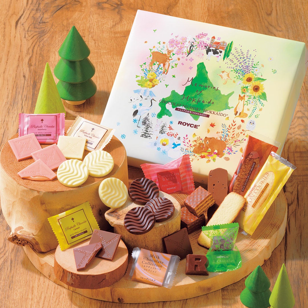 色や素材から、四季それぞれをイメージできるロイズのチョコレートをセレクトした詰め合わせです。パッケージには、北海道の動物や、北海道の四季折々の植物が美しく描かれています。自然豊かな北の大地に想いを馳せながら、ロイズのチョコレートをお楽しみください。