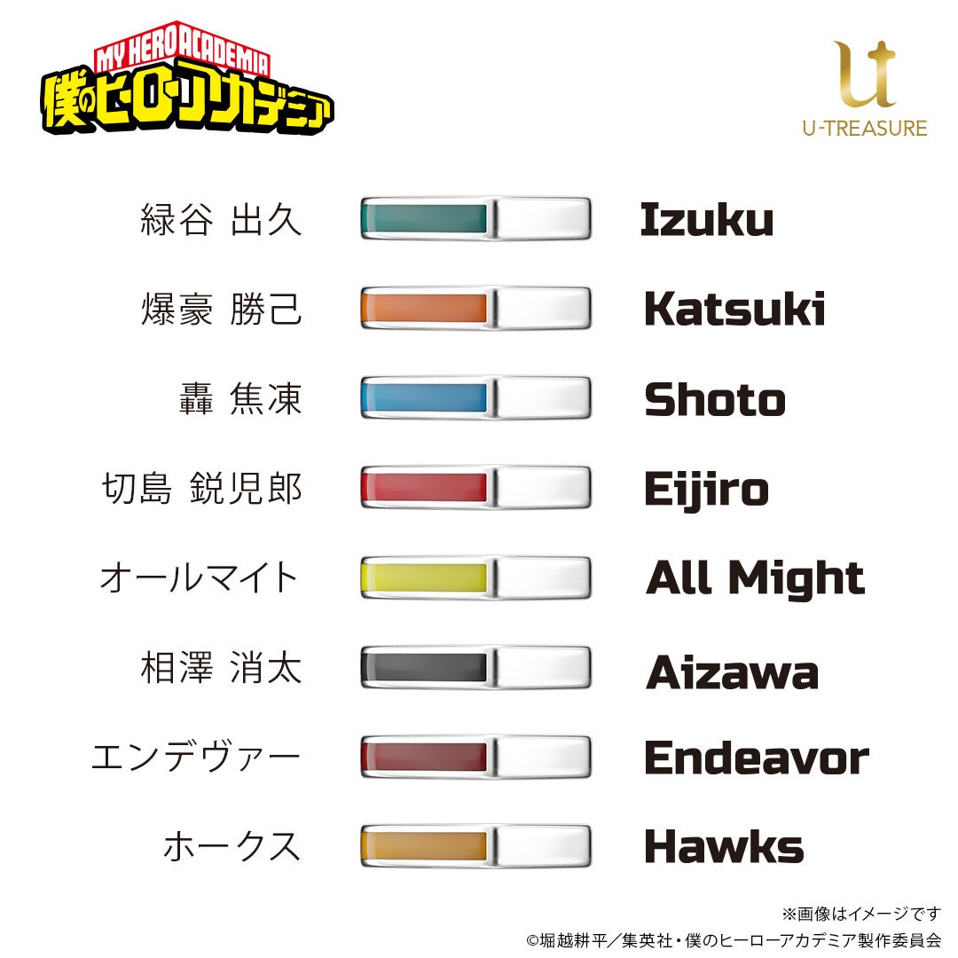 TVアニメ『僕のヒーローアカデミア』イヤーカフ。表側にはそれぞれのイメージカラーを!内側には英語で名前を刻印。8月8日(金)まで予約受付